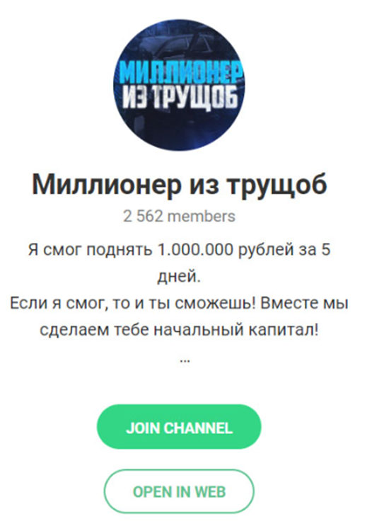 Деятельность телеграмм-канала «Миллионер из трущоб»