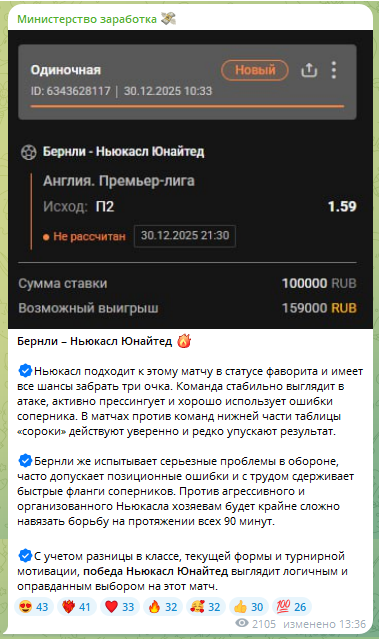 Сообщество «Министерство заработка» в течении пяти лет предлагает в telegram прогнозы на спорт в формате марафона, но верифицированную статистику пари каппер не ведет. Сделаем анализ контента и выясним метод заработка автора.