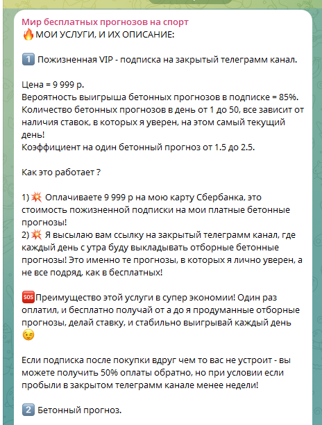 - ВИП-чат с «бетонными» ставками — 9 999 рублей;