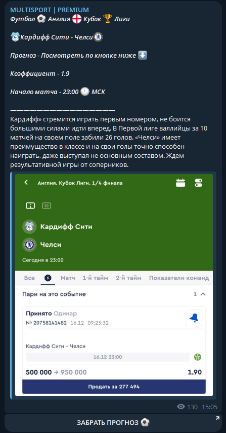 MULTISPORT | PREMIUM — канал, в котором более 6 000 подписчиков. Однако активность подписчиков низкая — примерно 10% от аудитории регулярно просматривают контент автора. Владелец проекта полностью анонимен — это лишает беттеров возможности оценить его аналитику и опыт. Такое поведение похоже на схему мошенников.