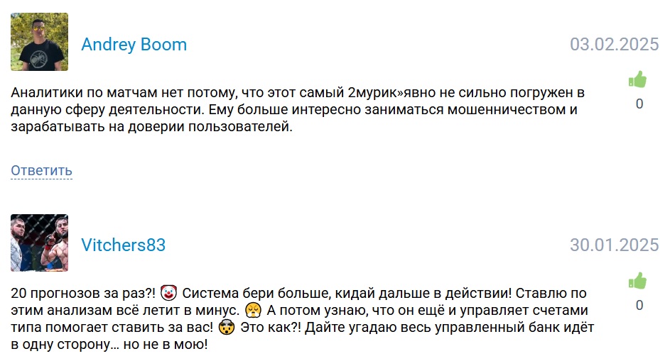 Реальные клиенты оставляют негативные комментарии: деньги теряются уже на второй день подписки, купленные прогнозы не приносят дохода, каппер не отвечает на жалобы.