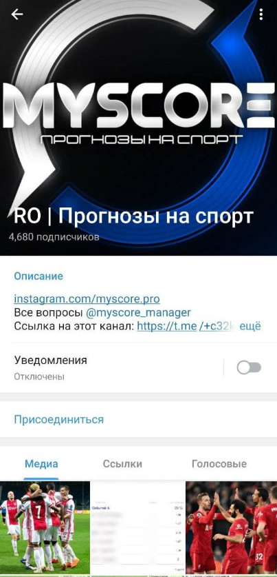 Телеграм-канал MYSCORE PRO: мнения пользователей, статистика ставок на матчи в БК и проверка репутации капера myscore_manager