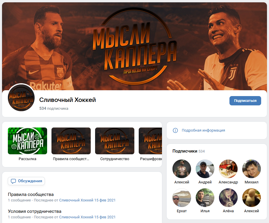 ВКонтакте каппер публикует скрины с купонами. Но они совершенно не сопровождаются аналитикой. Разборы после матчей тоже отсутствуют. Отсутствие дополнительного контента ограничивает возможности подписчиков в получении полезной информации для самостоятельного анализа.