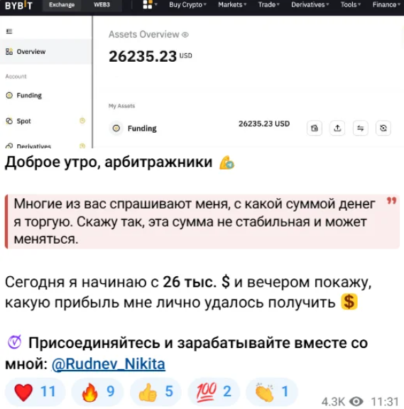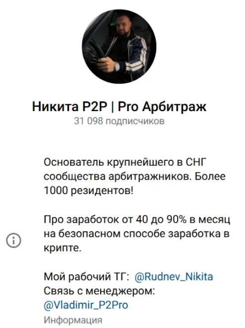 Никита P2P Pro Арбитраж — телеграмм-канал, который с 2023 года обещает подписчикам доход на арбитражных схемах. Автор под ником Никита Руднев (@Nlkita_P2P) позиционирует себя как прогнозист и эксперт, предлагающий сотрудничество по принципу «20% от прибыли клиента». Но проверка показала: перед нами типичный проект с признаками мошенничества, где доверие игроков — лишь инструмент для развода.