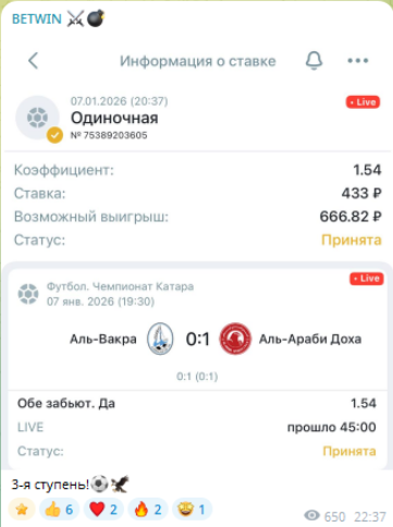 «Новогодняя Лесенка» в Телеграмм: анализ матчей на спорт и статистика капера BETWIN