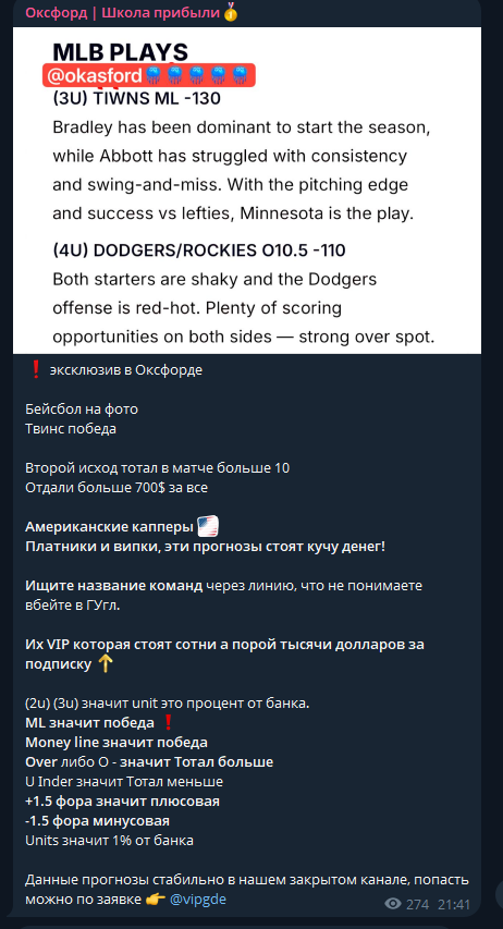 В приватном Телеграм-канале «Оксфорд 𝐕𝐈𝐏» пользователям предложены ставки от разных капперов. Судя по контенту, владелец ресурса отбирает лучших аналитиков и делится их платными прогнозами. Ниже рассмотрим, можно ли получить прибыль от ставок в БК с предиктами данного проекта.