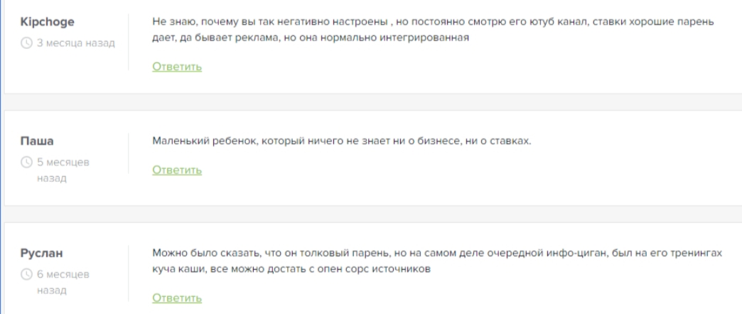 Каппер не скрывает личность, открыто общается с аудиторией. Однако свой профессионализм не подтверждает реальными фактами. В сети кто угодно может назвать себя экспертом в ставках.
