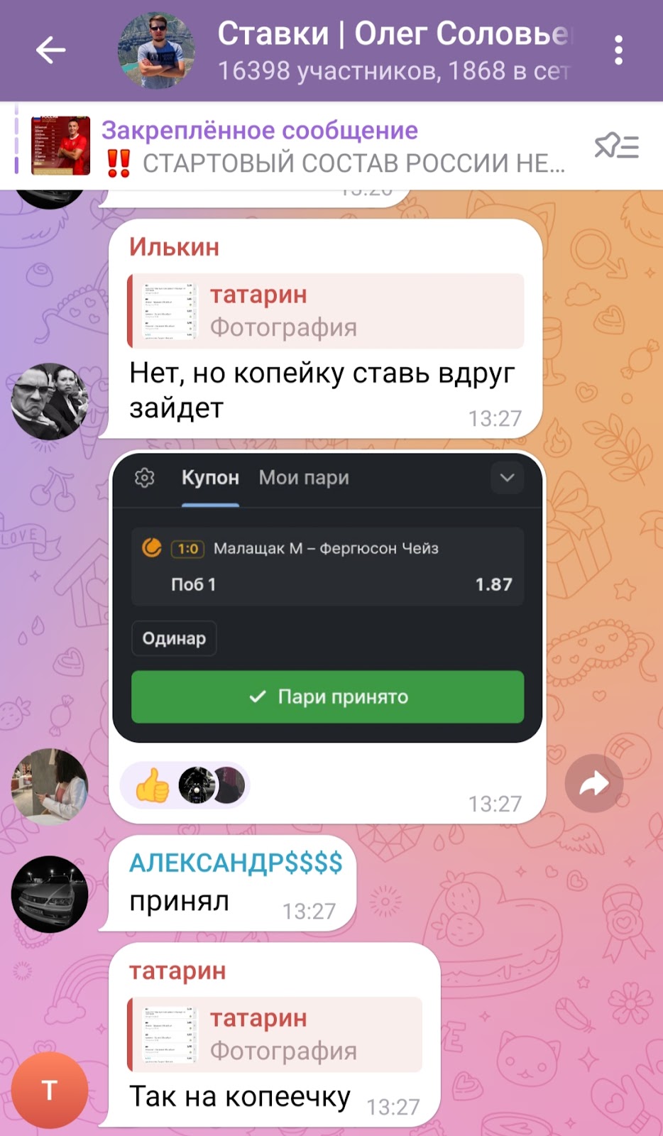 Деятельность каппера Олега Соловьева в ТГК, ВКонтакте и Ютубе