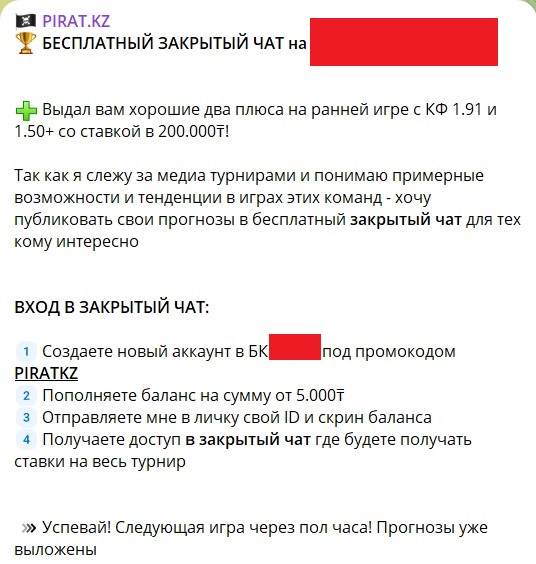 PIRAT KZ — ресурс для заработка на ставках: но не на спортивных результатах, а на наивности подписчиков. Накрутка, платные подписки с завышенными ожиданиями — все это указывает на одно: доверять каналу не стоит.