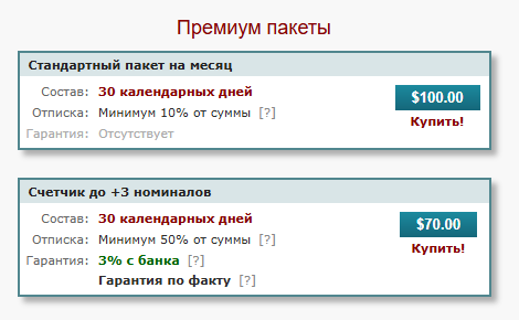 Второй вариант — счетчик до 3 номиналов. В реальности капер гарантирует только 3% от банка. Стоимость подписки будет возвращена, если результат окажется меньше заявленного.