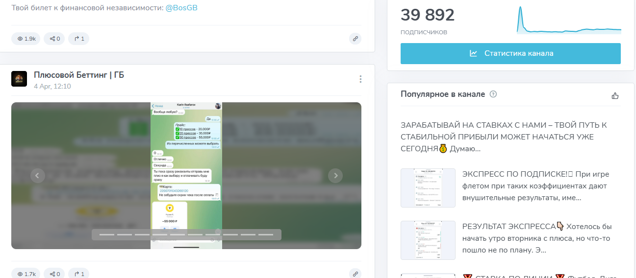Меняется и название TG, на данный момент проект известен как Плюсовой Беттинг ГБ. Собрал почти 40 тыс. подписчиков, их них менее 10% просматривает контент. Значительная часть аудитории была накручена ботами для численности.