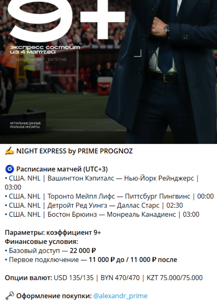 Проект Prime Prognoz | Night Express в Telegram: отзывы игроков и проходимость ставок на спорт прогнозиста Alexandr_Prime