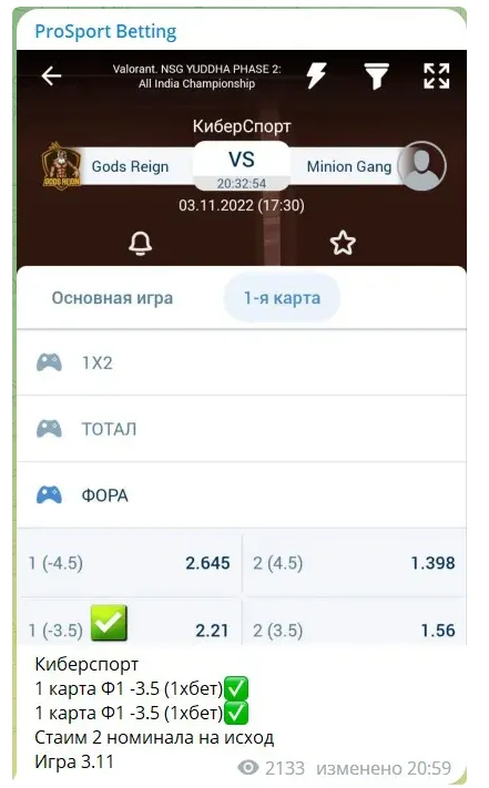 Деятельность телеграмм-канала Pro Sport Betting