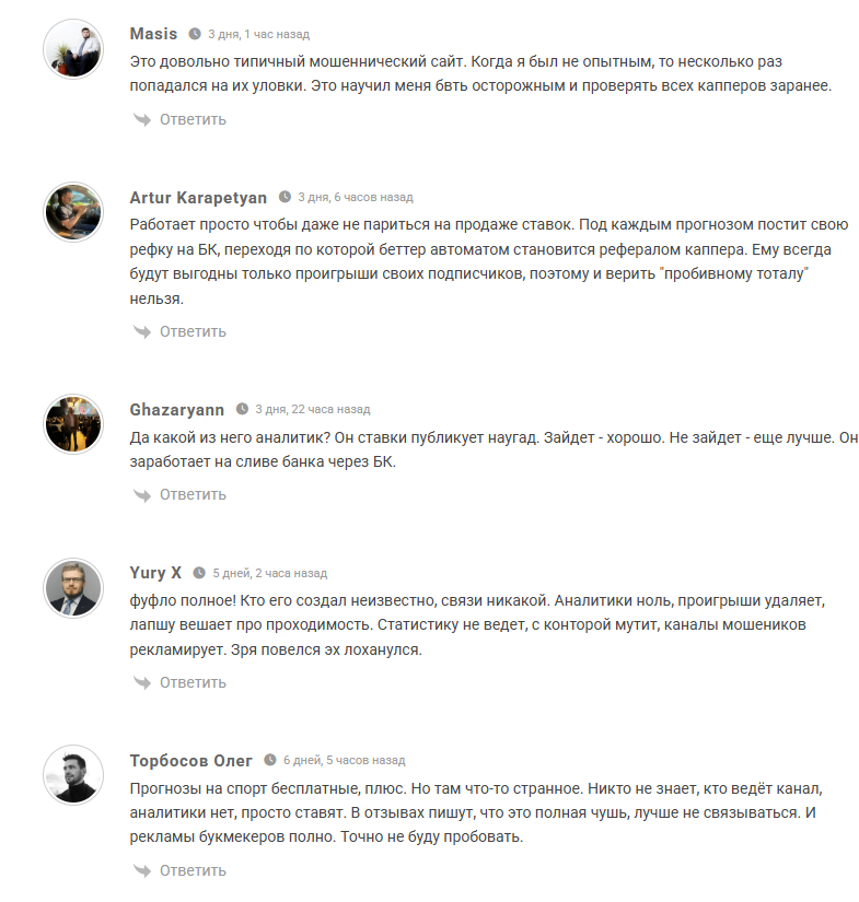 Канал, несмотря на большое количество подписчиков в прошлом, не особо популярен среди беттеров. Но нам удалось найти немало негативных отзывов на разных площадках.