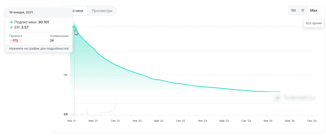 Статистика проекта есть в сети. Данные доступны за период с января 2021 года. В этот момент на канал было подписано 30 тысяч человек. Вовлеченность на уровне 3-4%. Показатели позволяют судить о накрутке. У проекта нет реальной аудитории. Понятно, почему администрация решила закрыть канал.