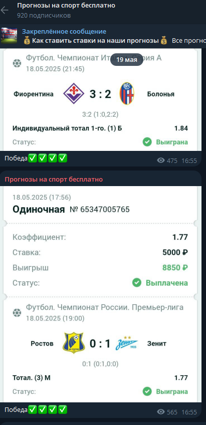 Проект Прогнозы на спорт бесплатно предоставляет аудитории аналитику для ставок на разные дисциплины. Как понятно из названия, каппер канала продвигает исключительно бесплатный контент. Если судить по статистике ресурса, прогнозы часто выигрывают и стабильно приносят доход. Ниже разберемся, не использует ли прогнозист мошеннические схемы для развода игроков и можно ли считать ТГ-канал надежным источником спортивных ставок.