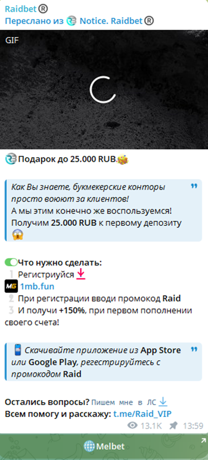 Деятельность телеграмм-канала Raidbet