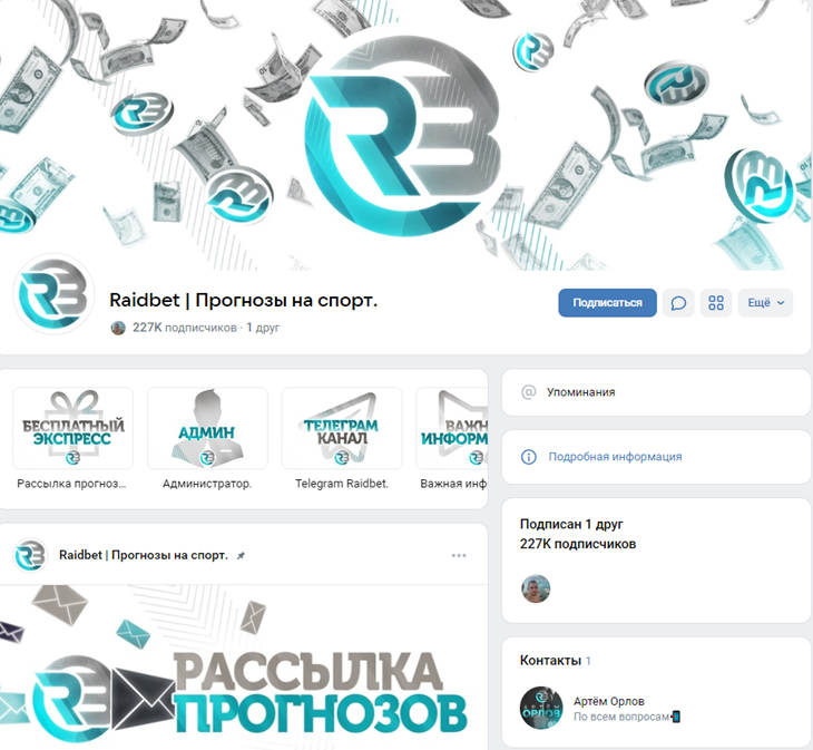 Создатель проекта называет себя Артемом Орловым. Однако это вряд ли настоящее имя нашего героя. Его личная страница во вконтакте выглядит заброшенной, она не похожа на реальный аккаунт обычного человека. В телеграмме связаться с прогнозистом можно через профиль @Raid_VIP. Основным направлением для заключения пари автором был выбран футбол. Об опыте Артема в сфере беттинга ничего не известно.