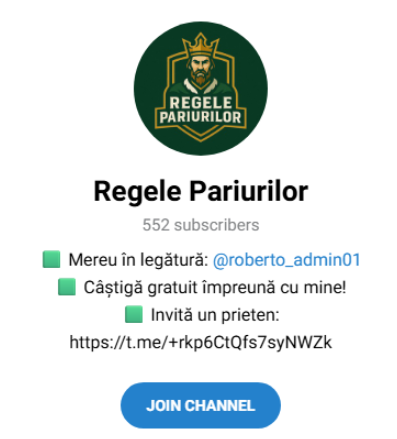 Regele Pariurilor — проект, в котором любители беттинга могут найти разные варианты ставок на несколько спортивных дисциплин. Ресурсом занимается админ с ником Roberto_admin01. Владелец «гарантирует» высокую проходимость ставок, однако его работа вызывает серьезные сомнения из-за схемы заработка через БК. Проведена проверка ресурса для разоблачения истинной репутации прогнозиста.