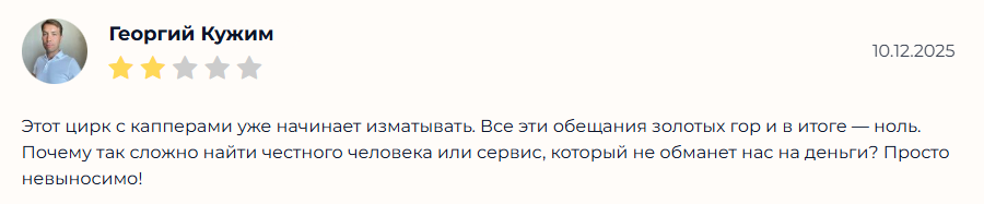 В telegram-канале нет реальных отзывов от клиентов. На сторонних источниках есть негативные комментарии и жалобы на развод. Положительный имидж в сообществе создается искусственно.