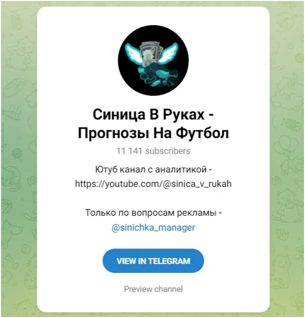 Обзор проекта в Телеграмм Синица В Руках Прогнозы На Футбол: статистика и заработок от Журавль в небе, реальные отзывы клиентов о капере @sinichka_manager