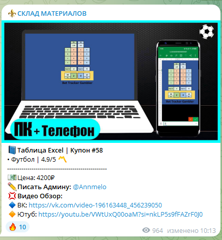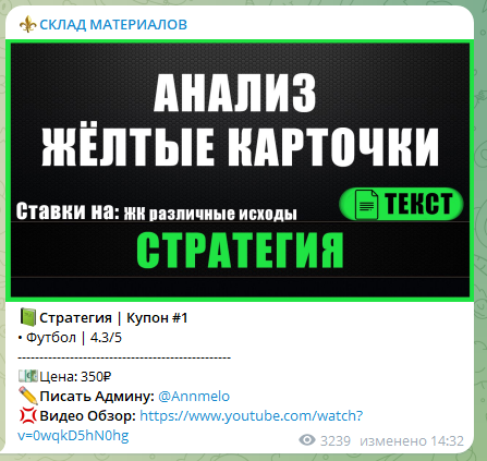 На Складе материалов каппер продает подписчикам боты и excel-таблицы с игровыми стратегиями. Другой контент отсутствует. Новые сообщения выкладываются сравнительно редко, но своя аудитория у проекта есть. Дальнейшая проверка покажет, связан сервис с мошенничеством или с его помощью можно заработать.