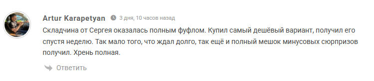 Комментарии под постами Складчины 24 в Telegram и ВКонтакте отключены, что позволяет администратору избегать критики. На сторонних ресурсах зафиксированы многочисленные жалобы. Пользователи сообщают о блокировке после оплаты. Они пишут, что каппер просто не присылает обещанное пари, а также отказывается вернуть деньги. Помимо этого, игроки пишут, что прибыль от ставок не достигается, а статистика публикуется с завышением успешных исходов и сокрытием проигрышей.