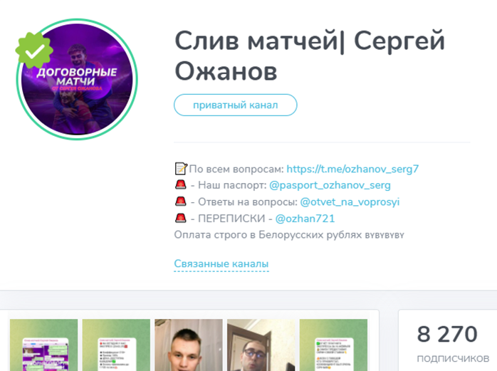 Итоги проверки телеграмм-канала «Слив матчей | Сергей Ожанов»