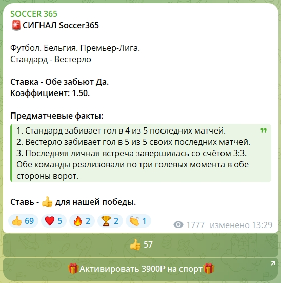 Обзор паблика в Телеграме SOCCER 365: статистика, цены на ставки каппера Алексея, качество аналитики