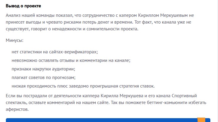 Несмотря на то, что канал Спортивный спектакль сейчас не функционирует, kirill_merkushev по прежнему может вести подобную деятельность через другие проекты. Чтобы их отличить, важно помнить ключевые факторы скама: