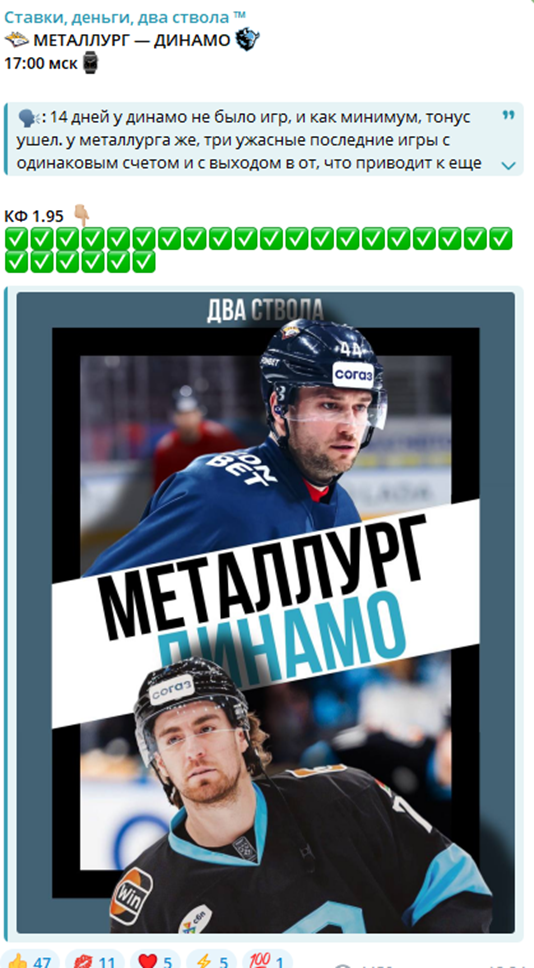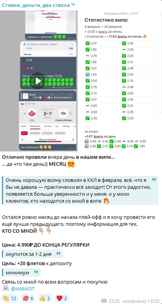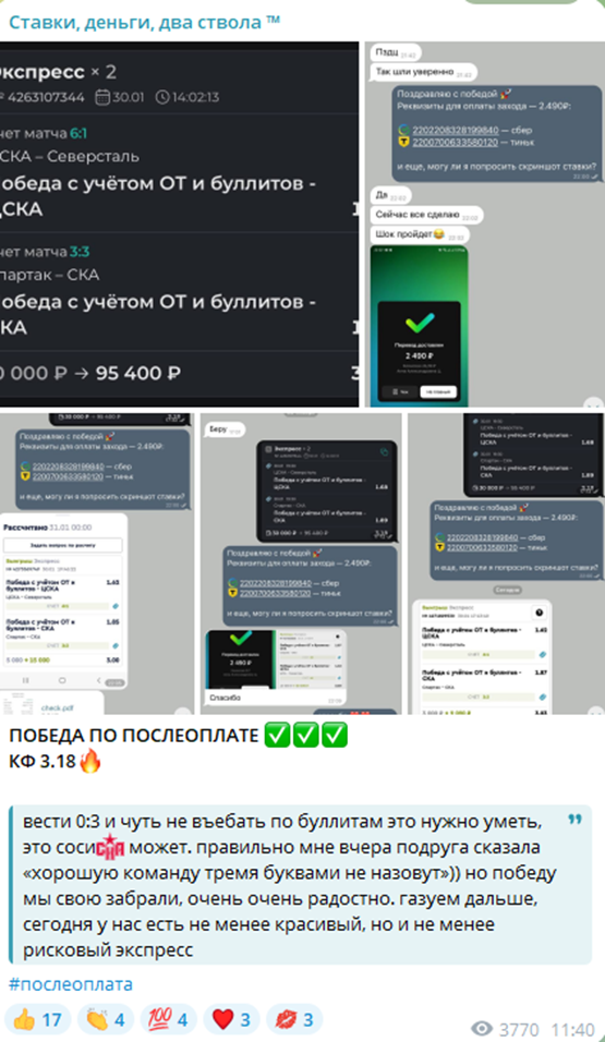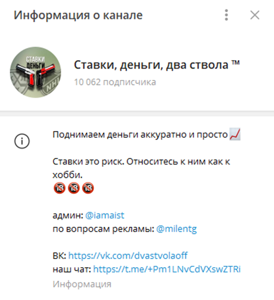 Итоги анализа телеграмм-канала «Ставки деньги два ствола»