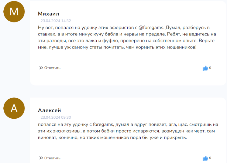 Все благодарности фейковые, купленные. Чтобы узнать мнение реальных беттеров, стоит обратиться к сторонним площадкам. Пишут о разводе на деньги, стабильных минусах, бесполезных прогнозах.