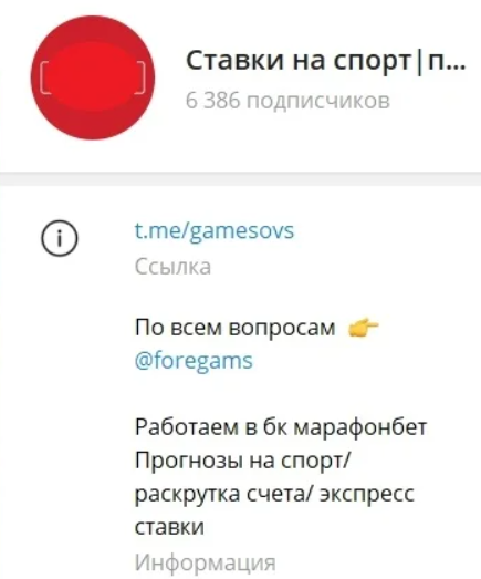 Админ Телеграмм канала Ставки на спорт Прогнозы постоянно меняет ник, например, известен как Sfoootboool, при этом не называет реальное имя. Работает в команде с другими анонимными прогнозистами, не вызывающими доверия. Хотя авторы рассказывают о большом опыте в беттинге – свыше 17 лет, этому нет ни одного доказательства.