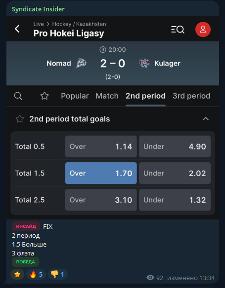 Проект Syndicate Insider — канал со спортивной аналитикой преимущественно на футбол и хоккей. Ресурс приватный, его каппер делится платным и бесплатным контентом, а также инсайдами на «грязные матчи». Рассмотрим, заслуживает ли прогнозист доверия клиентов.
