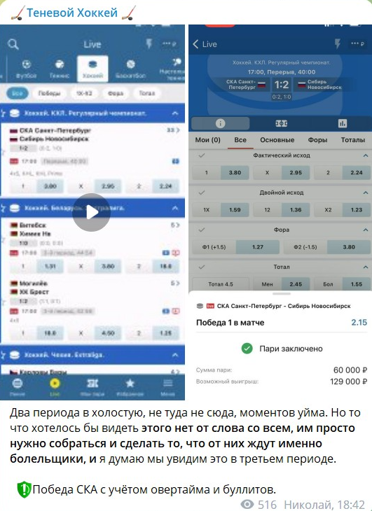 Проверили Telegram канал Теневой Хоккей и выяснили, что в нем нет очевидных признаков мошенничества. Но это еще не означает, что вы сможете получить доход, ставя по советом из Телеграм. Некоторые каперы используют более мягкую схему развода, которая не отпугивает всех опытных беттеров сразу. В статье расскажем, почему не стоит ставить по советам этого капера, как он получает свою прибыль и почему с ним вы сольете свой банк.