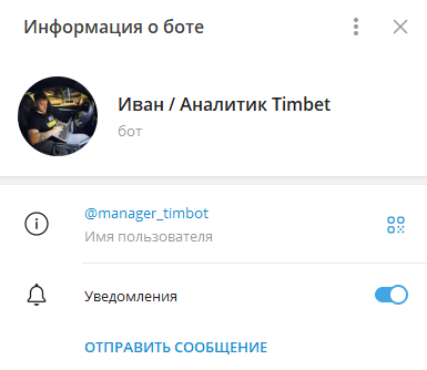 Аналитик проекта — некий Иван. Его лицо показывают в роликах. Но больше информации о прогнозисте не предоставлено. Для связи с администрацией проекта можно использовать бот в Телеграмм — @manager_timbot.