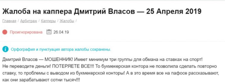 Мы не рекомендуем работать с Дмитриев Власовым и любыми каналами, связанными с ним. Скорее всего, вас обманут и вы потеряете свои деньги. Помните, что профессиональные капперы не обещают сиюминутной прибыли, они работают вдолгую и имеет выигрыш на длинной дистанции. Это единственное, что отличает их от обычных игроков. А лучшим вариантом будет относиться к ставкам как к хобби и не пытаться любыми способами извлечь из них прибыль. Сделать это сегодня практически нереально.