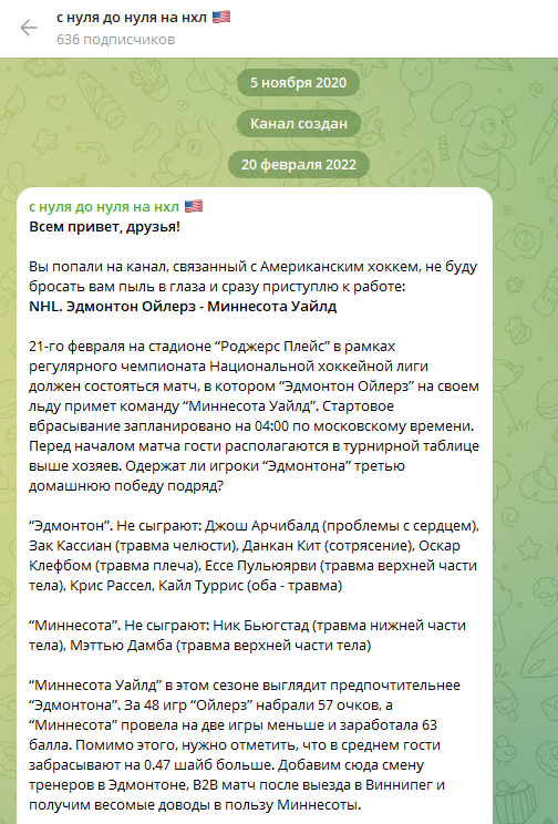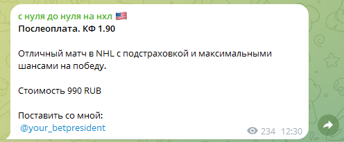 С нуля до нуля на нхл — последнее актуальное название телеграмм-канала, который также был известен как USA HOCKEY. Это блог каппера, который продавал спортивные прогнозы. Он называл себя профессиональным хоккейным аналитиком. Телеграм-канал не работал на протяжении года. Но около месяца назад капер разместил ставку. Поэтому мы решили провести проверку. Из разоблачения вы узнаете, что сейчас известно о проекте, какая у него репутация и что предлагали беттерам.