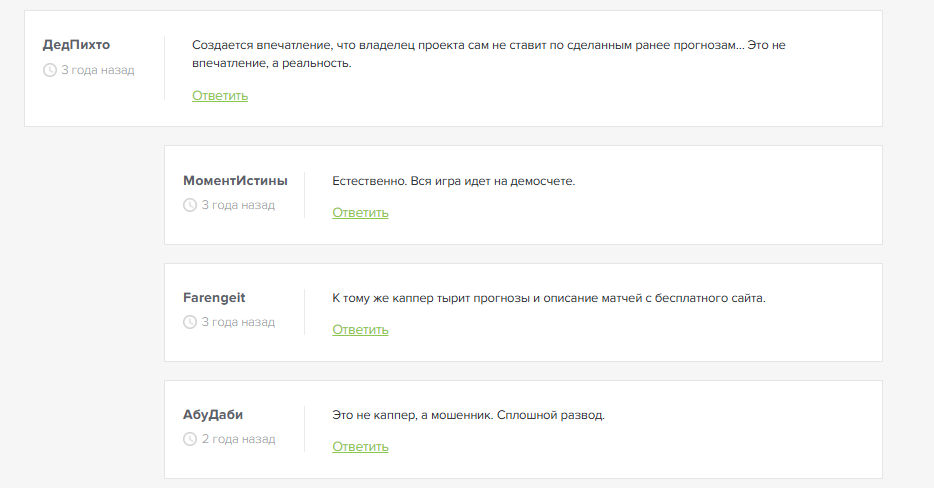 У проекта негативная репутация. Положительных комментариев нет в интернете. Пользователи утверждают, что капер занимался разводом. Проходимость его ставок была на низком уровне. Проект малоизвестен, на форумах и сторонних сайтах, в рейтингах о нем практически нет свидетельств.
