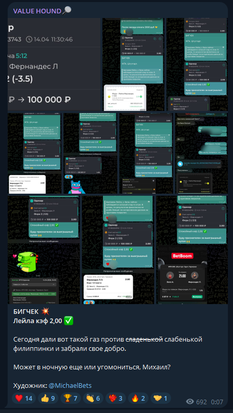 Отзывы о проекте VALUE HOUND в Telegram: проходимость прогнозов на спорт аналитика MichaelBets