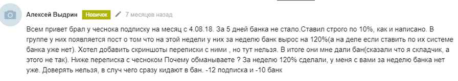 В Телеграм закрыты комментарии, каппер хочет избежать жалоб в свою сторону. Единственный способ увидеть реальное мнение клиентов о проекте – перейти на сторонние площадки. Группа Все по Чесноку принадлежит команде мошенников, публикуют однотипные купленные отзывы и сами же с разных аккаунтов просматривают ленту, делают репосты, чтобы создать видимость актива.