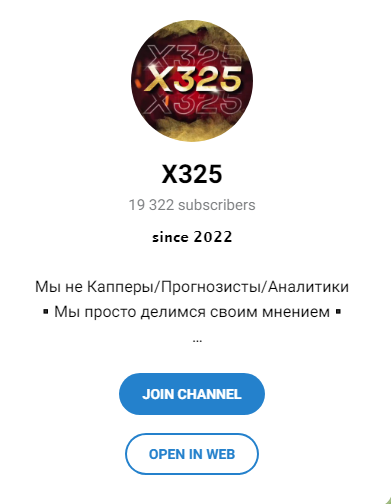 X325 – это Телеграм-канал, предлагающий бесплатные ставки на футбол, хоккей, киберспорт и другие дисциплины. Автор проекта утверждает, что работает не один, а в команде. Все пари выкладываются в открытом доступе без предварительной оплаты или подписки. Мы проверим, насколько оправдано использование советов с этого ресурса и может ли X325 считаться полезным пабликом.