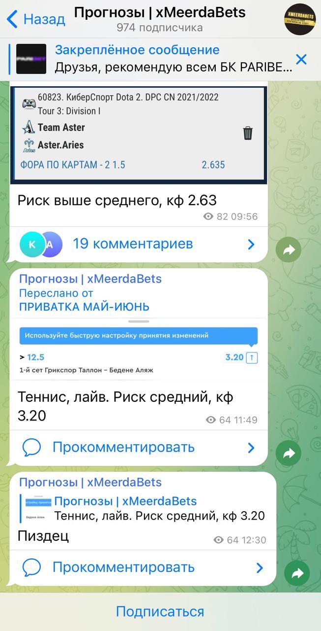 Отзывы игроков о канале xMeerdaBets: обзор проходимости ставок от Meerdax и расценки на прогнозы от xmzcmrd