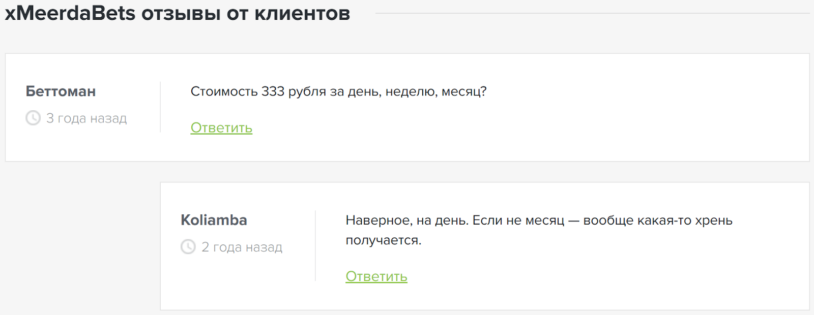 Отзывы реальных пользователей о проекте xMeerdaBets