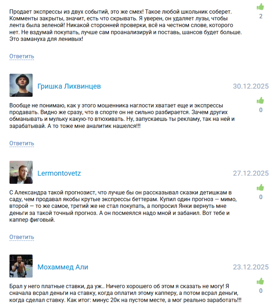 С положительными отзывами беттеров можно ознакомиться только в формате скринов сообщений от них. Вероятно, изображения — развод, так как на сторонних сайтах у канала негативная репутация. Есть разоблачения обмана на проекте и жалобы пользователей.