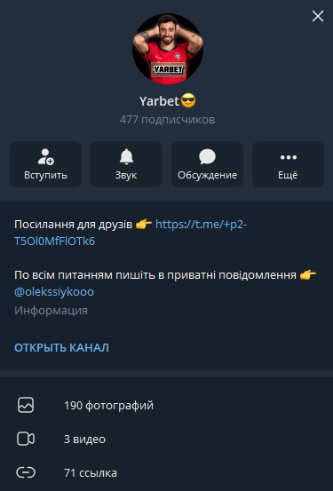 Телеграмм-канал Yarbet: как анализируются матчи и какие показатели проходимости у капера Yarbet Bet