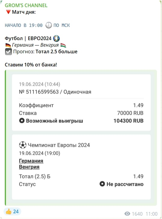 Денис Громов заявляет, что умеет делать деньги из воздуха и с удовольствием делится своими инсайдами с аудиторией. Подписавшись на его паблик в Телеграмм, каждый сможет стать сказочно богатым в кратчайшие сроки. Для этого достаточно довериться Денису. Он делится с аудиторией договорными матчами на футбол. Рассмотрим подробнее данный проект и решим, в действительности ли Denis помогает людям.