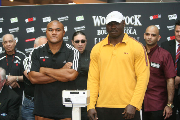 Вчера в Окленде (Новая Зеландия) состоялась официальная процедура взвешивания участников сегодняшнего поединка в рамках супертяжелого веса. Давний претендент на титулы в супертяжелом весе 37-летний Дэвид Туа, впервые выходящий на ринг после яркой прошлогодней победы над Шейном Камероном, показал на весах 239,75 фунта (108,7 кг), а его соперник 38-летний нигериец Фрайди Ахунанья оказался немного легче — его вес составил 229,5 фунтов (104,1 кг). Недавно бывший менеджер и тренер Туа Кевин Барри выражал опасения, что новозеландец набрал много лишнего веса и выглядит растренированным, однако взвешивание показало, что Туа подошел к этому бою практически с тем же самым весом, что и к поединку против Камерона. Напомним, что в планы промоутера Туа Седрика Кушнера входит проведение в этом году четырех поединков.