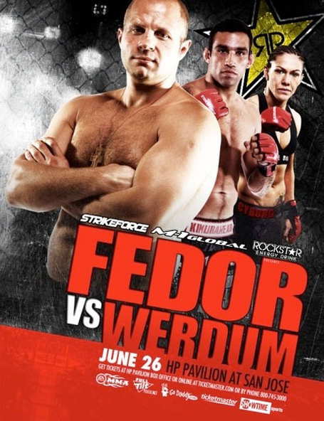 Организации Strikeforce и M-1 Global выпустили постер предстоящего шоу с участием Федора Емельяненко и Фабрисио Вердума. Также известно, что в рамках шоу выступит одна из сильнейших женщин бойцов в мире Кристина Сантос. Стоит отметить, что у букмекеров Федор является явным фаворитом: ставки на его победу принимаются с коэффициентом 1,12, в то время как на победу Вердума коэффициент составляет 5,75.