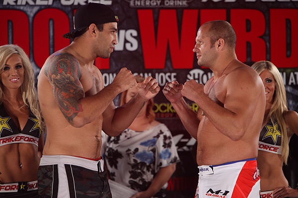 Вчера в США состоялась официальная процедура взвешивания посвященная сегодняшнему турниру M-1 Global & Strikeforce, в рамках которого состоится бой сильнейшего бойца ММА в мире россиянина Федора Емельяненко (103,9 кг / 229 фунтов) с бразильцем Фабрисио Вердумом. (108,2 кг / 238,5 фунтов).